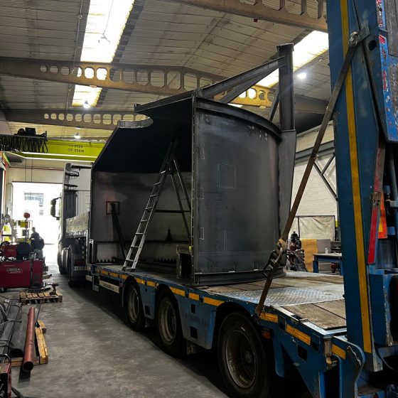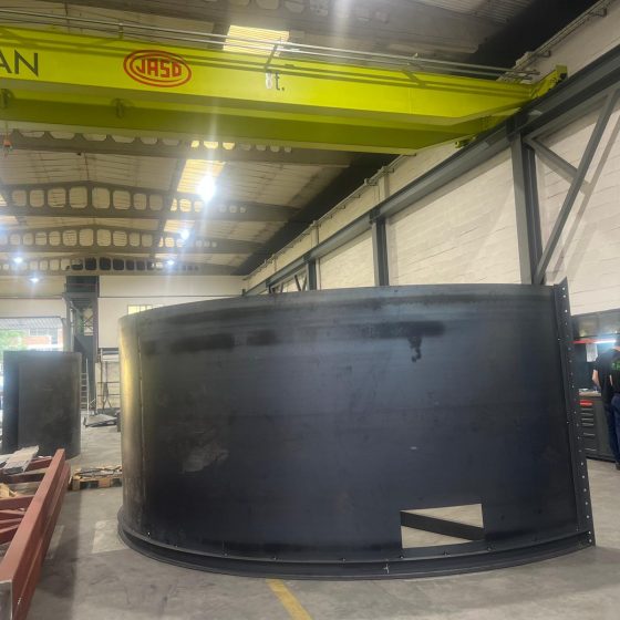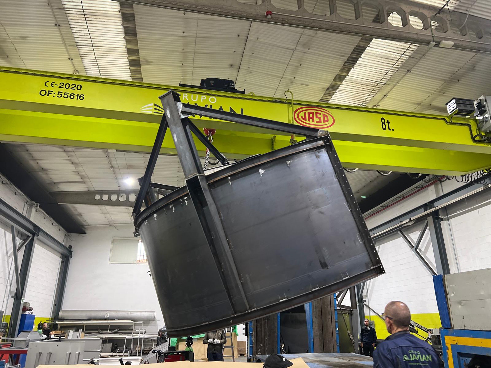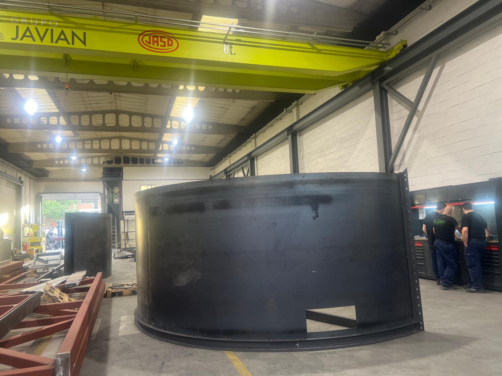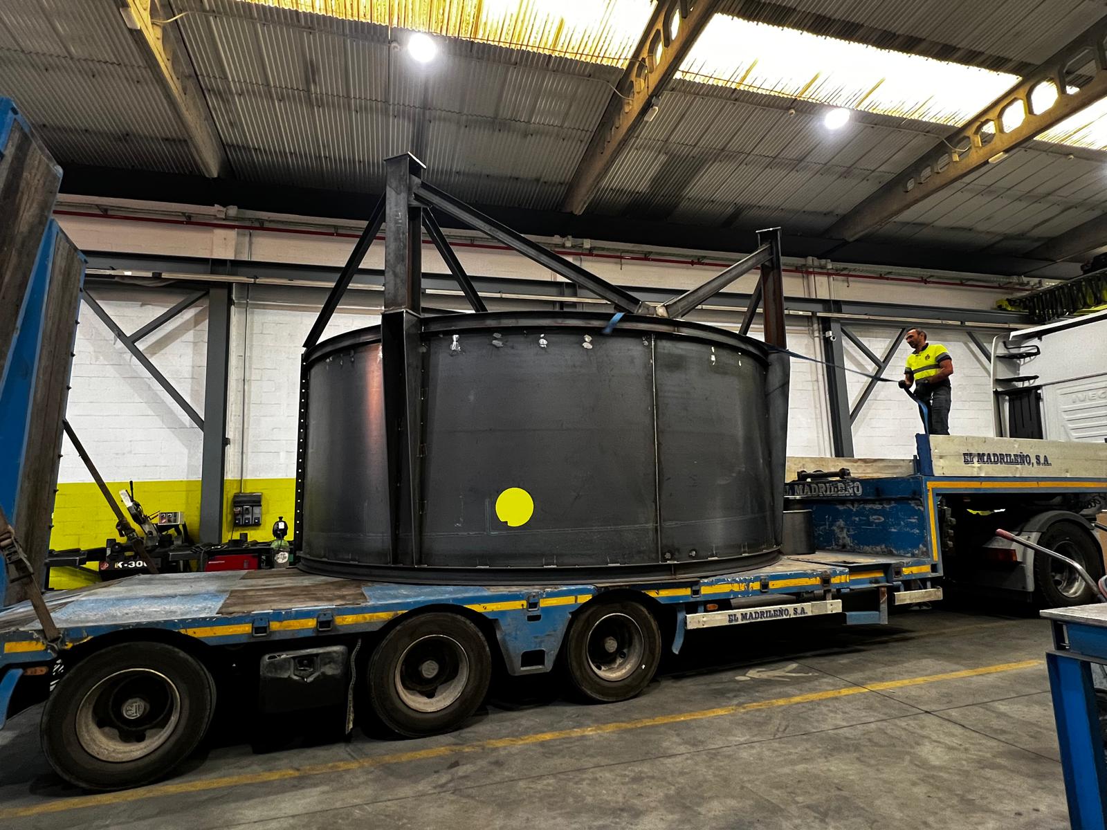 Uno de los principales condicionantes fue el transporte: por dimensiones, el tanque no podía desplazarse en una sola pieza, por lo que se diseñó y fabricó en dos partes, optimizando la logística y asegurando que el montaje final en obra pudiera realizarse de forma controlada y eficiente.