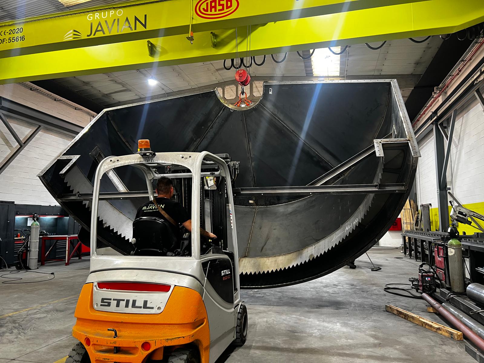 Este proyecto ha supuesto un gran reto para nosotros, y nace de una propuesta directa de Eleme Áridos y Hormigón, que confió en Grupo Javián para afrontar una fabricación exigente tanto por dimensiones como por condicionantes logísticos y de montaje. Bajo su dirección facultativa, y contando con su diseño y suministro de equipos, hemos podido ejecutar con éxito la fabricación de un tanque espesador de lodos de 5 metros de diámetro, construido en acero al carbono y preparado para trabajar en condiciones de servicio exigentes.